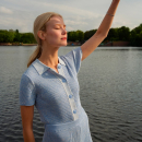 Gilet Samsoe Samsoe, modele bonnie. Ce gilet bleu clair est compose de coton organique et d'un col de polo. Il dispose d'une patte de boutonnage et de manches courtes. Ce gilet peut etre assorti a la jupe bonnie semblable de Samsoe Samsoe. Ce gilet est disponible avec l'abonnement Une Robe Un Soir.